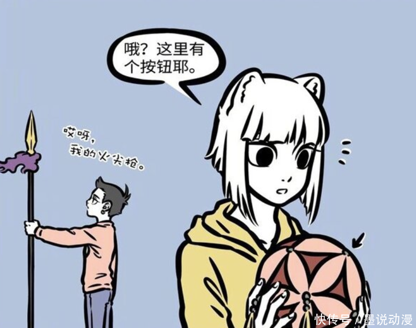 哪吒还找到了火尖枪,这可是他最趁手的武器。可以看出哪吒看着火尖枪之后有所感触,或许是回忆起以前战斗的情景。不过火尖枪的作用越来越小,后续只能用来杀蚊子此时九月还在研究绣球,被她发现了个特殊的按钮。按照九月好奇的性格,肯定会按下按钮,那么会发生什么事情?