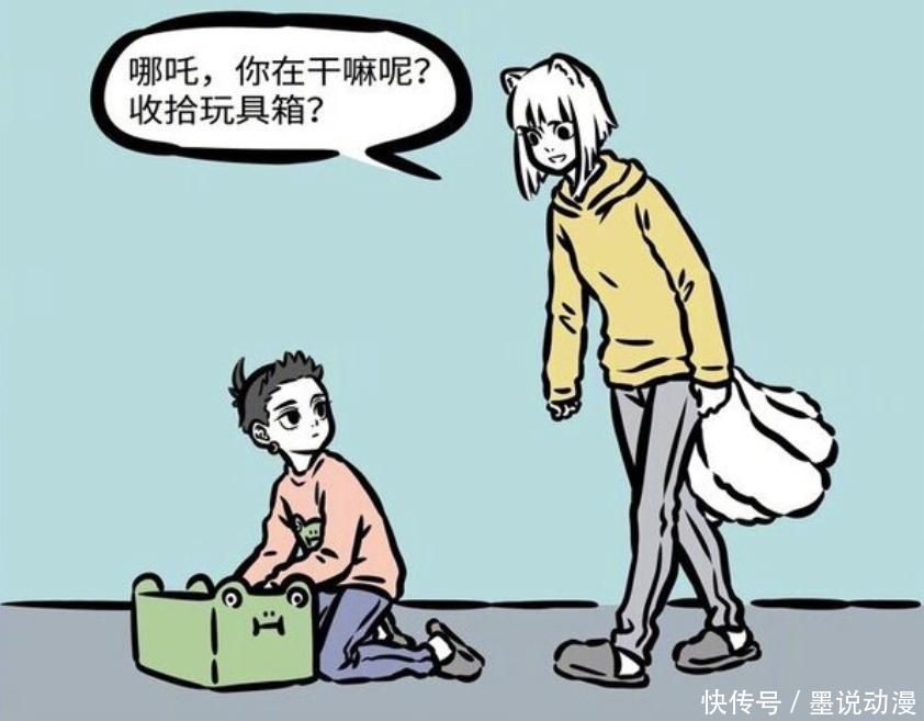 九月来到观音家,发现哪吒正在整理玩具。九月好奇哪吒整理的玩具都有什么,哪吒也看了九月一眼。哪吒的玩具箱也比较特别,是青蛙造型。如果了解哪吒,就知道他除了龙之外,也喜欢青蛙。
